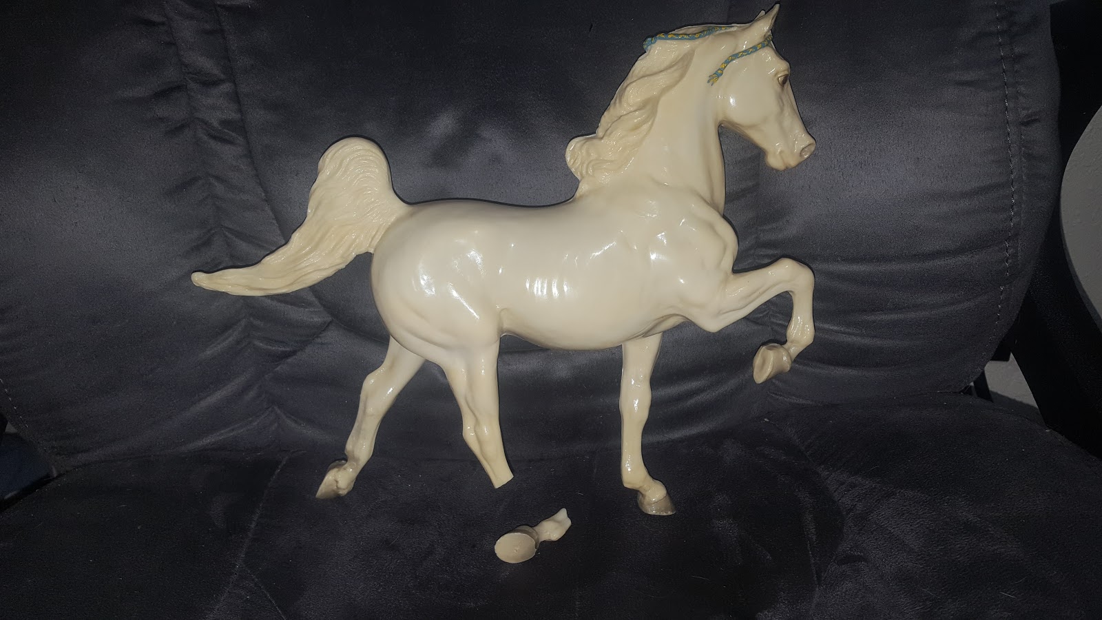 General is a casualty of the "Squirrel Wars" that have been going on this spring. On the plus side the sunning is doing well for him! I was disappointed that it happened at all, but I didn't expect DeEtta to have a meltdown over it. She cried all night because he was absent from his spot, so I put Buddy up there. It somewhat cheered her up. A couple weeks later the Quake Hold that I ordered in March finally arrived, so I put him back at his post. My plan is to finish sunning him and then send him to a restoration artist to fix his leg and some scuffed up shading.